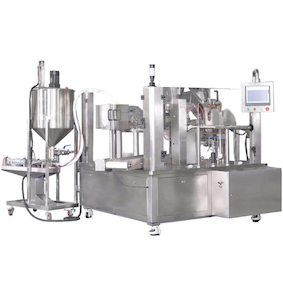 The machine supports for various filling products including liquids, powders, granules, or pastes.